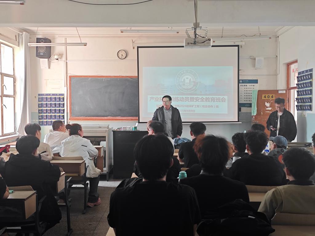 为确保2024级采矿工程(校企合作)专业订单班产业拓展训练安全有序开展,深化产教融合育人成效,9月9日,太阳成集团tyc122ccvip在工程楼404教室召开产业拓展训练动员会暨安全教育班会。公司党委副书记敖岩辉,跟训教师褚建伟、韩旭,辅导员庞明慧及2024级采矿工程(校企合作)专业订单班全体30名员工参会,会议由辅导员庞明慧主持。