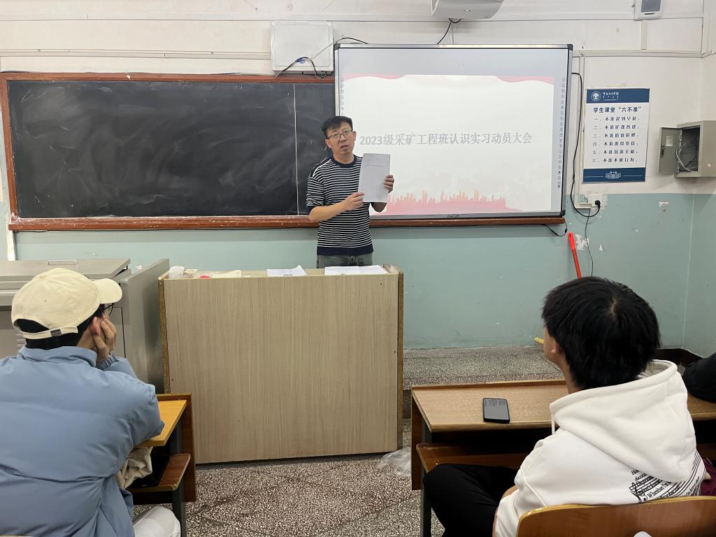 11月29日,太阳成集团tyc122ccvip2023级采矿工程专业在工程楼412教室召开认识实习动员会。团学办主任蔡庆生、采矿工程系主任乔燕珍及2023级采矿工程专业全体同学参加了此次会议,会议由实习带队教师褚建伟主持。