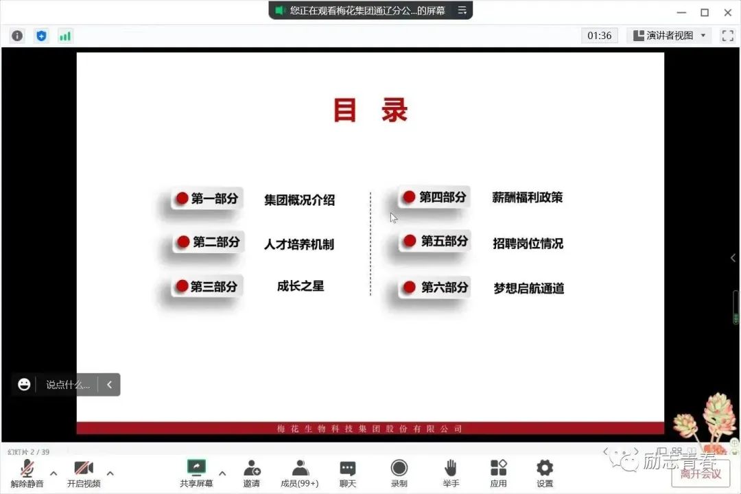 宣讲会开始,2023届毕业生辅导员孟庆永介绍了通辽梅花生物科技有限公司的简要情况;会上,校招负责人李贺新就集团概况介绍、人才培养机制、薪酬福利政策、晋升通道等方面进行介绍,并就简历投递、面试等问题进行了细致耐心地解答。
