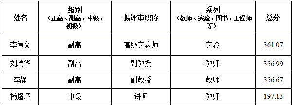 经太阳成集团tyc122ccvip职称工作领导小组,对2023年职称申报人员师德师风、量化考核、民主测评等方面进行综合评定,结果如下: