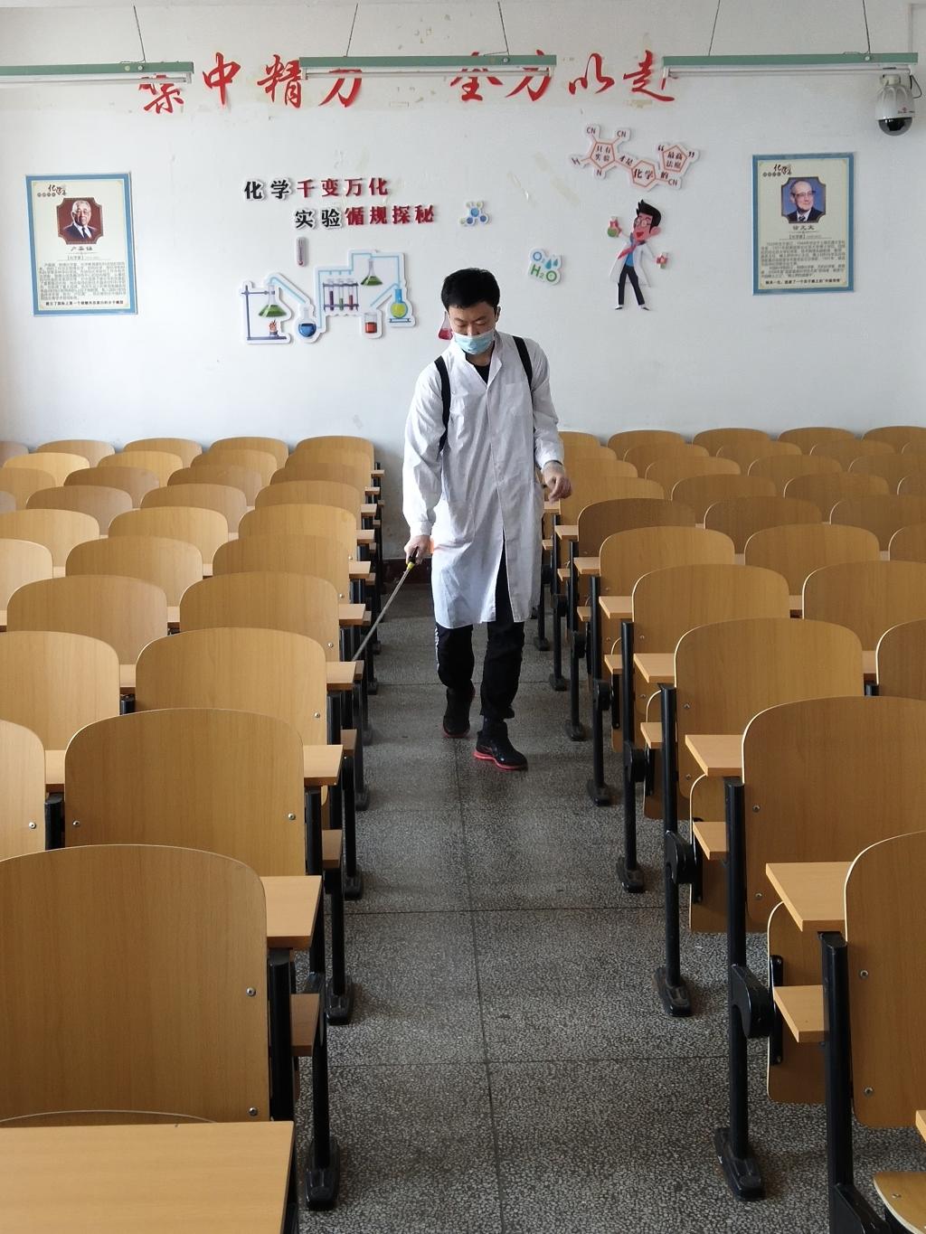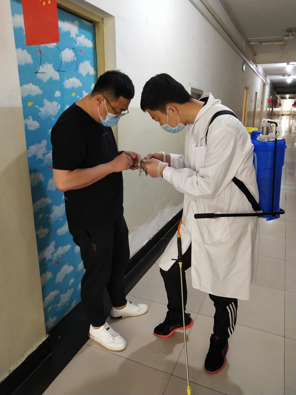 为了让返校毕业生在宿舍住得安全和放心,力求把防疫细节落实到位,在员工返校前,党总支副书记刘朋亲自带领团学办公室主任张一帆、辅导员孟庆永对员工宿舍、教室、公司办公区进行了全面的消毒杀菌,为师生开学复课提供可靠的安全保障。