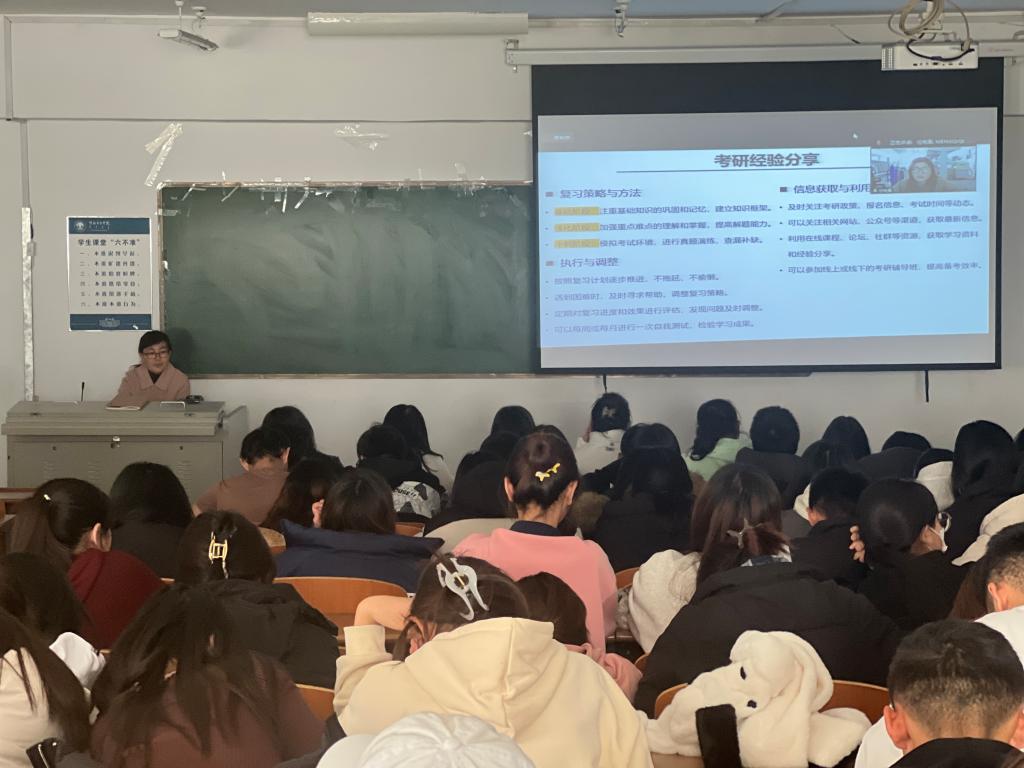 分享会上,3位员工分别结合自己的学习经历、考研准备,围绕确定专业方向、院校选择、结合自身资源科学制定考研计划、考试科目的复习方法、学习及休息时间的统筹、心态调整等方面进行了经验与心得分享,详细地给同学们讲解了在备考期间应注意的问题,同时,他们还向同学们分享了研究生就读期间的学习情况、科研工作和成果、校园生活、专业和课外社会实践等内容,鼓励同学们要以饱满的热情度过大学四年的学习生活,明确学习目标,制定适合自己的学习计划,希望同学们能够学有所成。