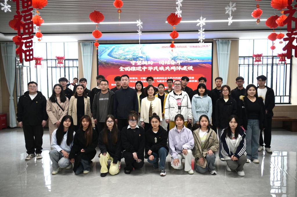 在铸牢中华民族共同体意识主题教育展厅中,展览以图文、声光电等方式全面生动地展示和讲述呼伦贝尔市各族人民在铸牢中华民族共同体意识过程中的生动实践和感人故事,全方位展示其丰硕成果。 活动中,全体成员共同学习“铸牢中华民族共同体意识”的深刻内涵,深刻感受到民族团结所带来的强大力量。师生们纷纷表示,通过此次参观学习,进一步加深了对中华民族多元一体格局的理解,更加坚定了铸牢中华民族共同体意识的责任感与使命感。