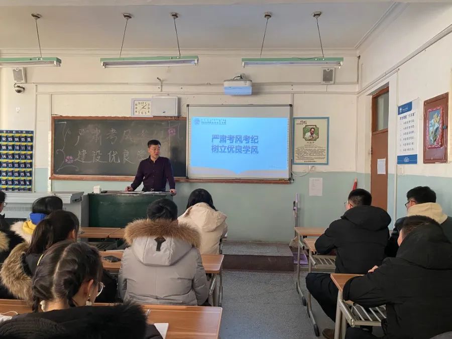 在班会中,刘朋老师首先对“太阳成集团tyc员工违反考试纪律的处分规定”进行了详细解读,让同学们全面掌握校规校纪的相关内容,准确知晓纪律红线和行为底线。并告诫同学们严格遵守考试纪律在考试过程中禁止作弊,机会总是留给有准备的人,不要心存侥幸,认真复习。