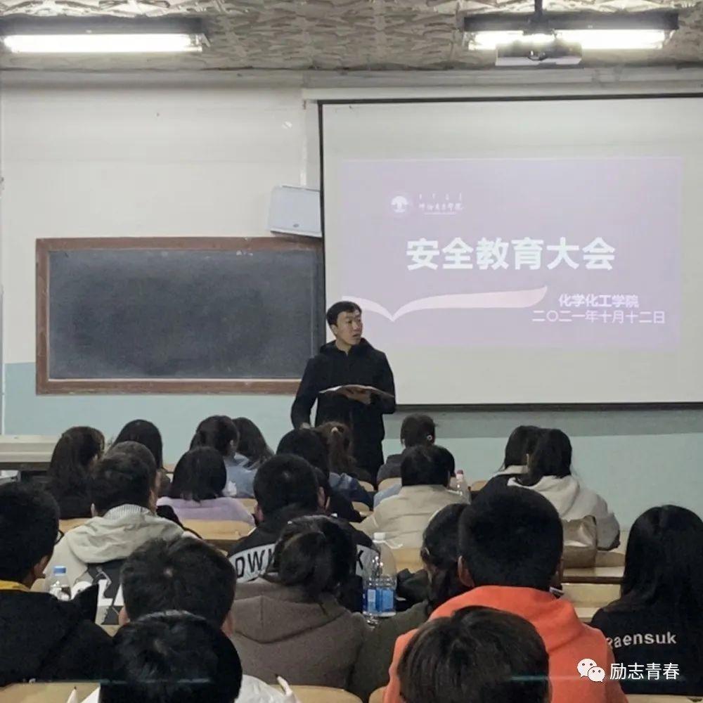 为了进一步开展员工安全教育,提高同学们的安全防范意识,化学化工公司于10月12日晚七点在工程楼224召开安全教育大会,会议由团总支书记、辅导员孟庆永老师主持,2020级和2021级全体同学参加。