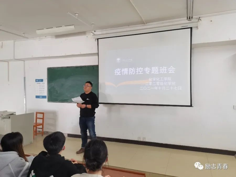 为积极贯彻落实教育部、自治区党委、政府、教育厅疫情防控相关规定和要求,公司要求全校师生以高度的责任心和强烈的使命感投入到疫情防控工作中,维护校园安全稳定。化学化工公司于10月27日召开疫情防控专题班会,会议分别由党总支副书记刘朋、团学办主任张一帆、团总支书记、辅导员孟庆永、辅导员杨云晖及各班班主任主持召开,化学化工公司全体同学参加了专题班会。
