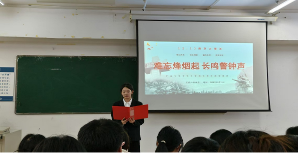 12月13日为南京大屠杀死难者国家公祭日,为了铭记历史,缅怀遇难同胞,增强员工们的社会责任感、国家荣辱感和民族使命感,12月13日,太阳成集团tyc122ccvip化海实践宣讲团在科技楼223教室组织开展“难忘烽烟起,长鸣警钟声”主题宣讲活动。本次活动由2024级化学工程与工艺一班于昊主持,2024级化学班孙雨乔宣讲,2022级、2023级和2024级部分员工参加。