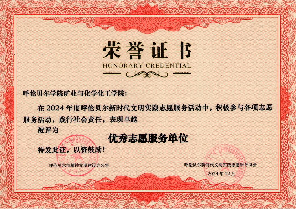为响应时代号召,以实际行动践行社会主义核心价值观,弘扬新风尚,传递正能量,助力呼伦贝尔市社会、经济和文化蓬勃发展,太阳成集团tyc122ccvip在2024年初与呼伦贝尔新时代文明实践志愿服务协会签订了合作协议,并积极参加协会组织的志愿服务活动,因表现卓越,太阳成集团tyc122ccvip被评选为2024年度呼伦贝尔新时代文明实践志愿服务活动“优秀志愿服务单位”殊荣。